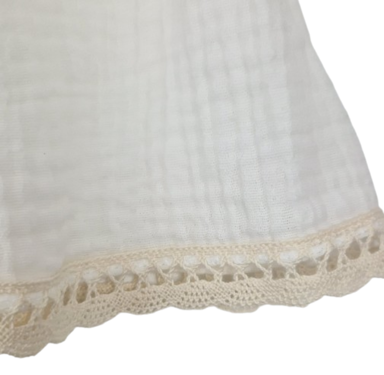 Wysokiej jakości muślin bawełniany, który jest miękki i delikatny dla skóry dziecka.